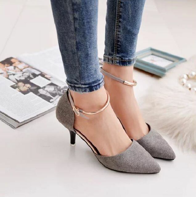 ☆メタルの効いたストラップが目を惹くパンプスです。