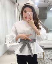大きなリボンでウエストマークすることで、細見え効果だけでなく脚長効果も期待できます。