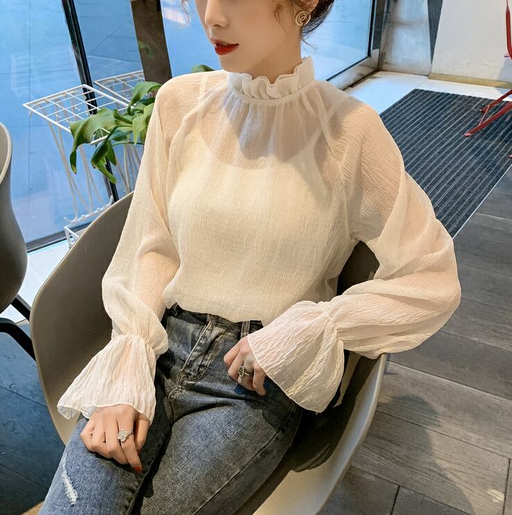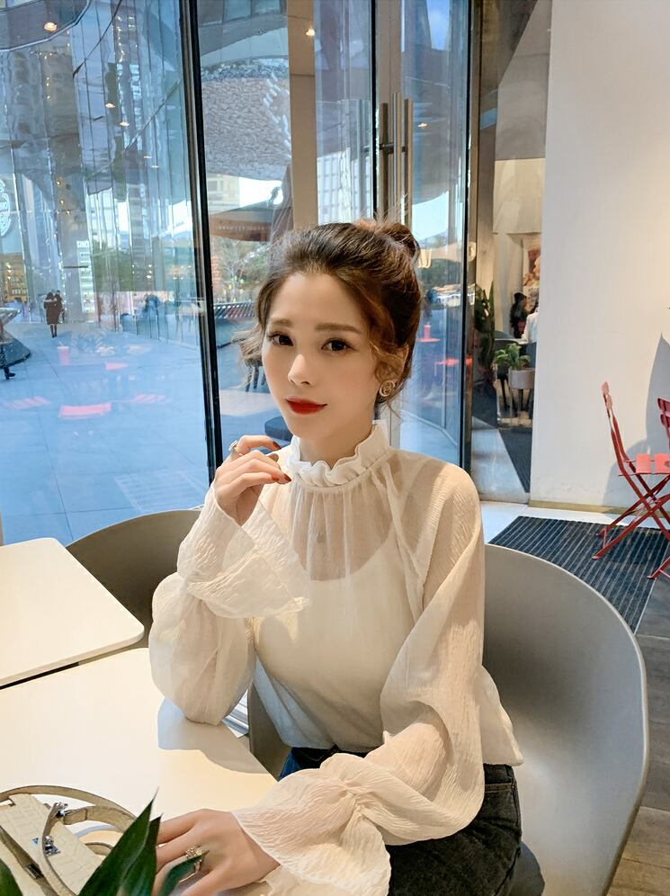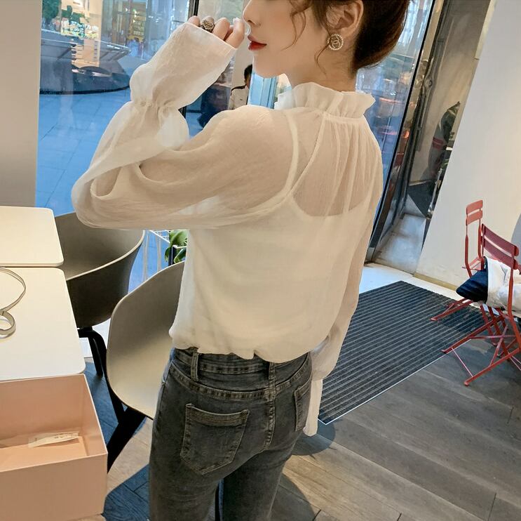 程よい透け感が大人っぽく、清楚で上品な雰囲気の長袖シフォンシャツです。