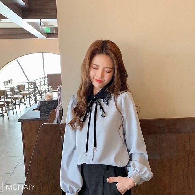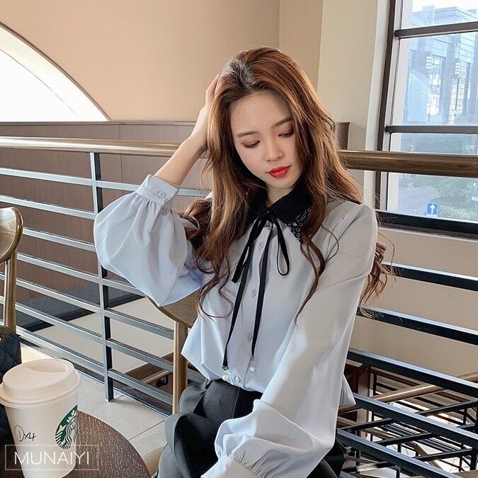 上品で女性らしい雰囲気の長袖シフォンシャツです。