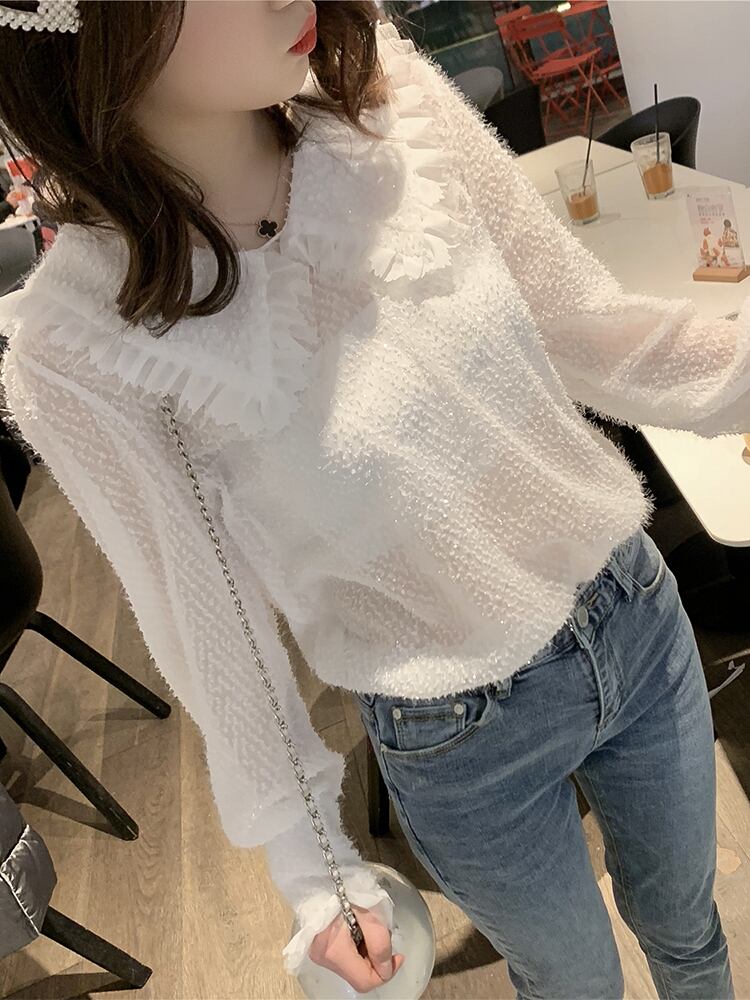 大きいフリルの襟が目を引くシンプルながらもとてもガーリーなトップスです。