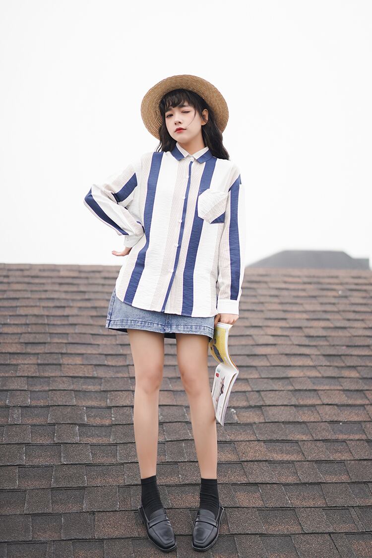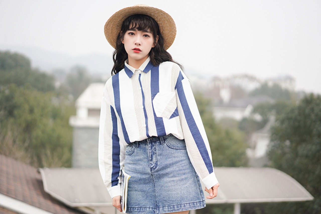 不均等なストライプ柄がとってもお洒落なトレンドライクなシャツ☆