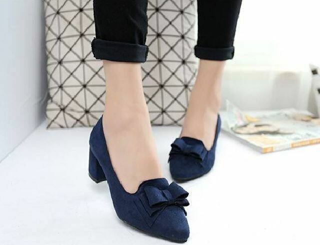 ☆太めヒールで歩きやすく リボンがかわいいパンプス