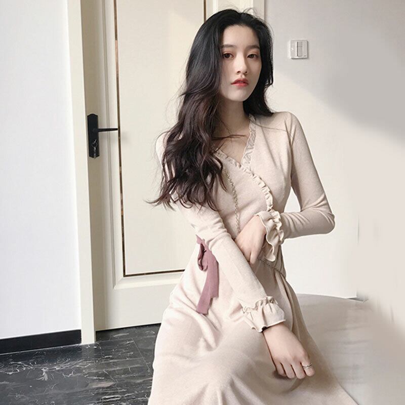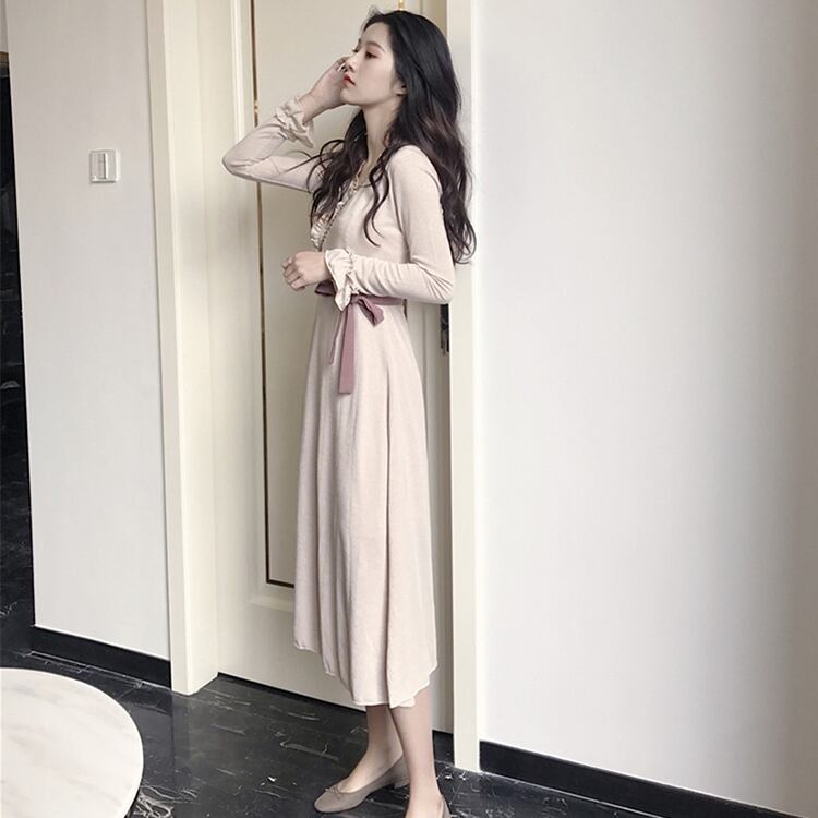 ウエストのリボンがワンポイントになって、女性らしい一枚です