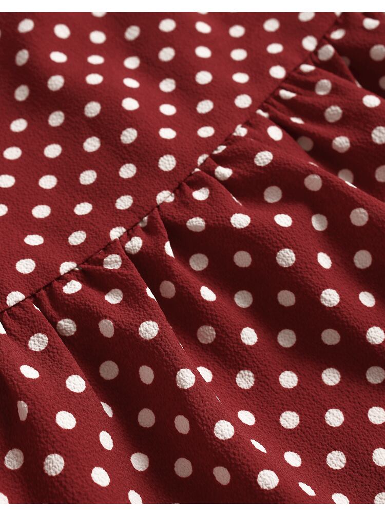 シックなレッドカラーに施した小粒ドット柄がガーリー&レトロな可愛さを引き立たせます。