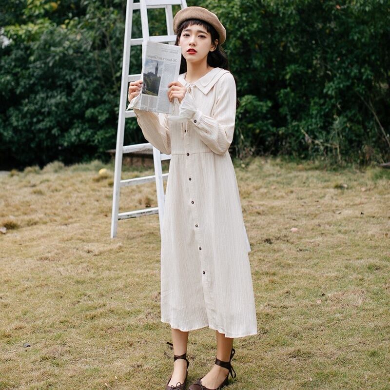 淡い色合いで大人ガーリーな雰囲気を醸し出すミモレ丈シャツワンピース♪