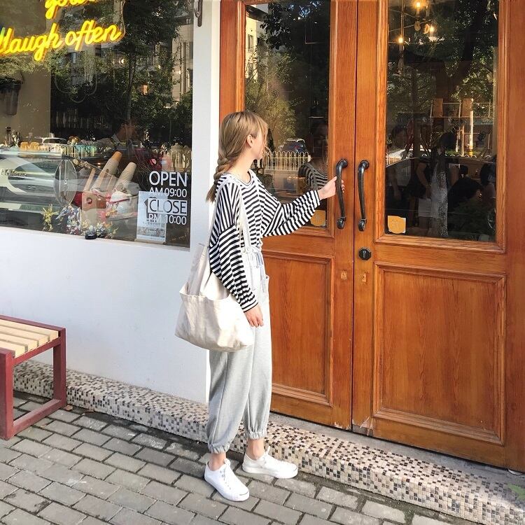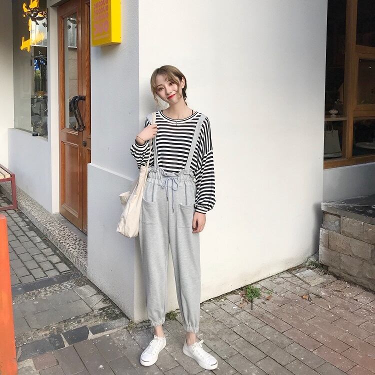 スウェット素材でカジュアルムードを高めるサロペットパンツ♡