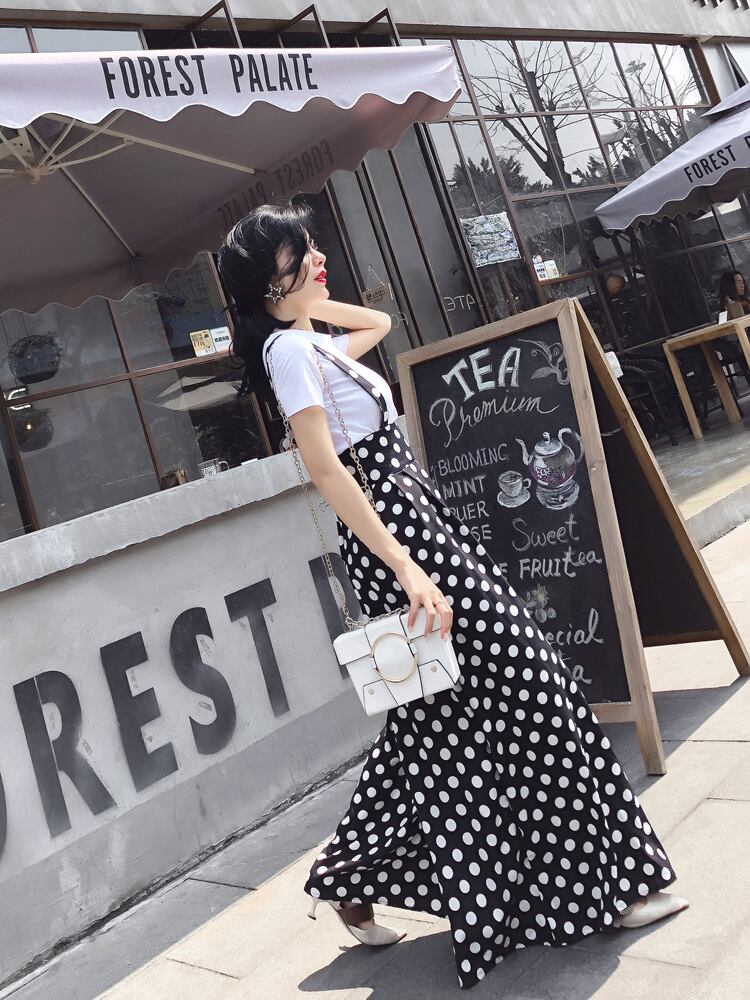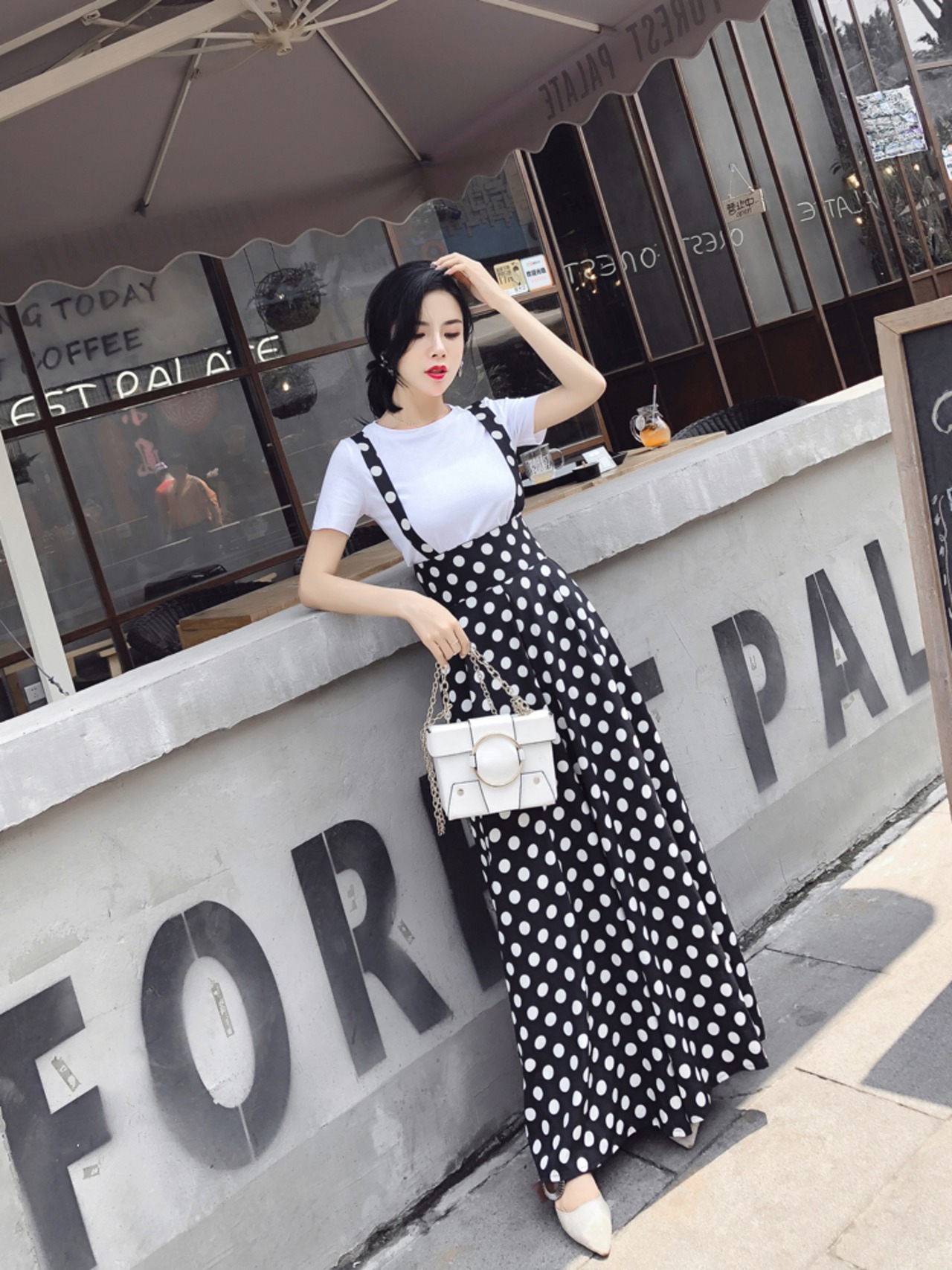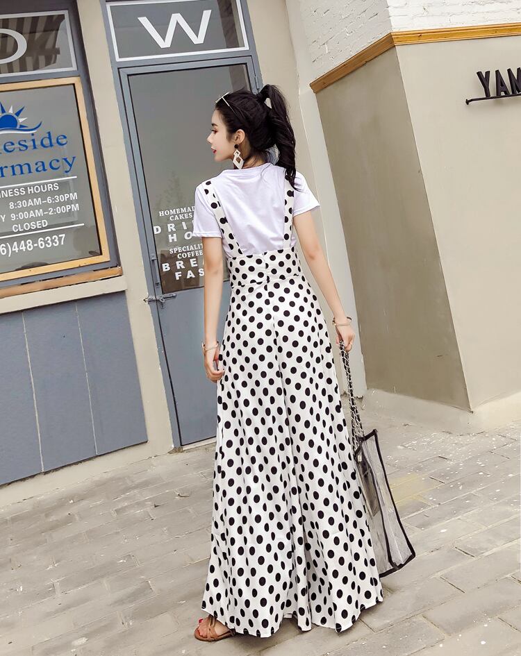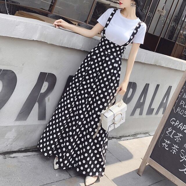 春物 売れ筋 おすすめ セットアップ 2ピース セット サロペット ワイドパンツ ドット柄 ゆったり 美脚 着やせ インナー Tシャツ カットソー ガーリー KN-0701 | dress_sugar_moon