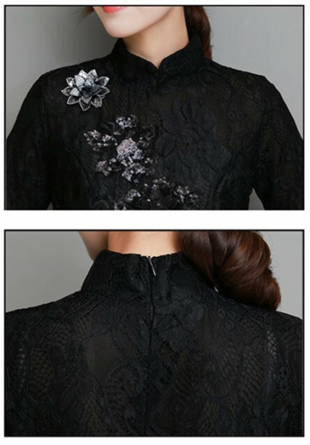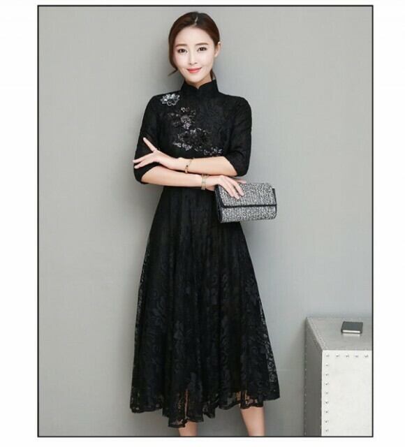 ワンピース 結婚式 大きいサイズ 二次会 ドレス お呼ばれ パーティー 謝恩会 冬 40代 30代 20代 50代 Aライン 黒 七分袖<br>ao-13551<br> | dress_sugar_moon