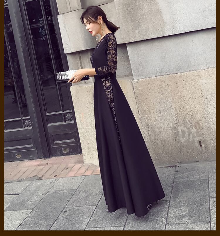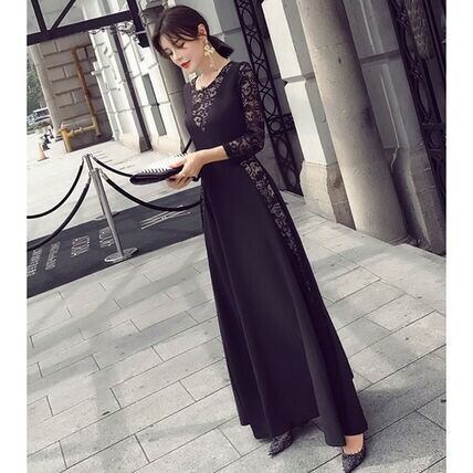 ワンピース 結婚式 大きいサイズ 二次会 ドレス お呼ばれ パーティー 謝恩会 冬 40代 30代 20代 50代 Aライン 黒 マキシ丈 レース 七分袖<br>ao-13600<br> | dress_sugar_moon