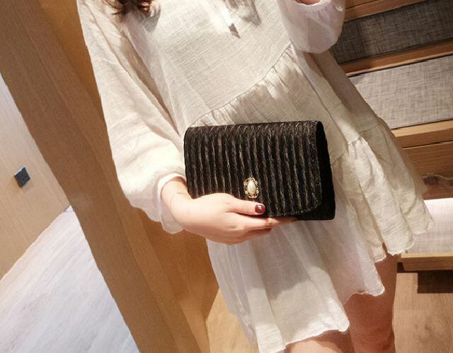 シンプルなのでどんなドレスにも合わせやすいクラッチバックです。