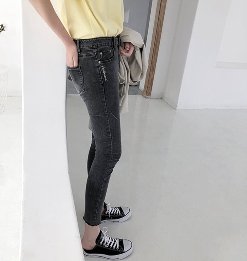 シンプルながらもダメージ加工がアクセントとなったアンクル丈ジーンズです。