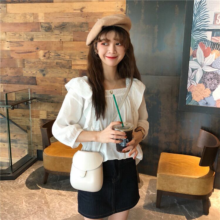 肩周りのボリュームたっぷりのフリルが可愛いポイントとなった七分丈トップス☆