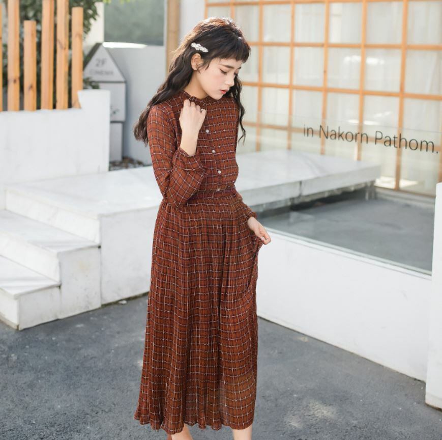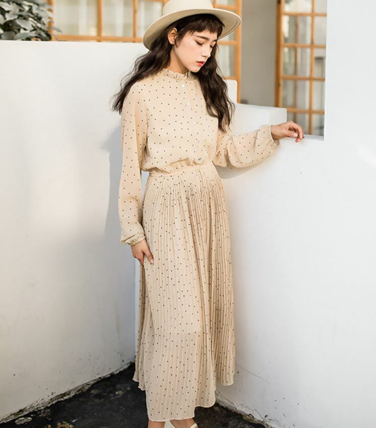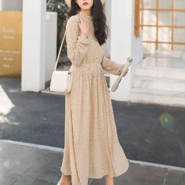 ハイネックのデザインがレトロで大人可愛いワンピース☆