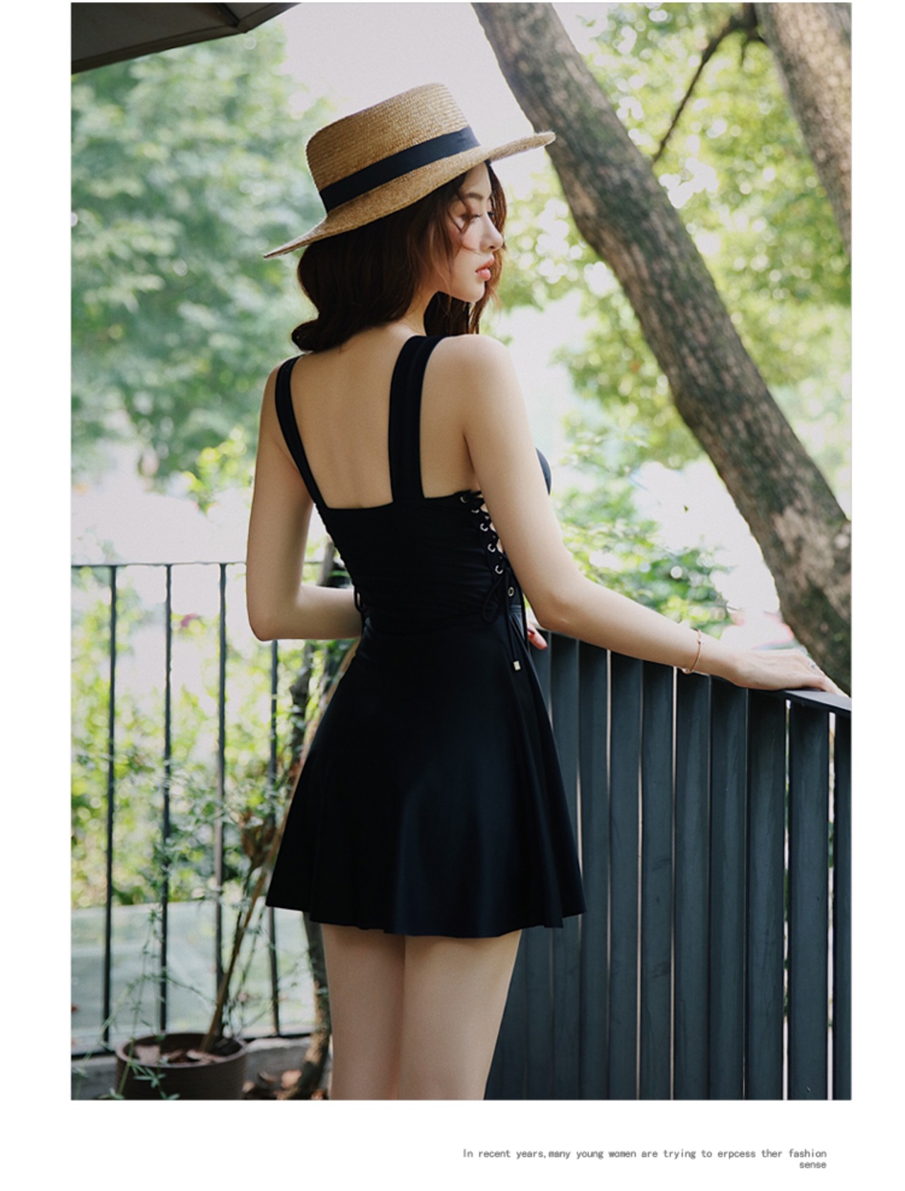 サイドのレースアップデザインがオシャレなワンピース水着です。