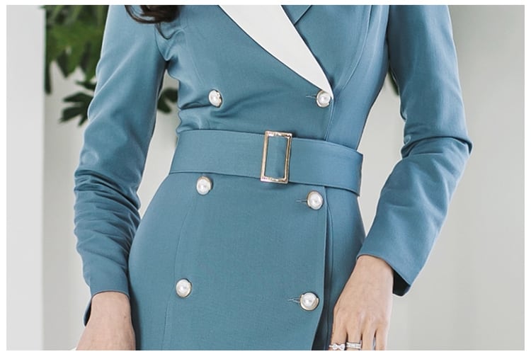 ブルーとホワイトのコントラストが春のうららかな陽気にピッタリのワンピースです。