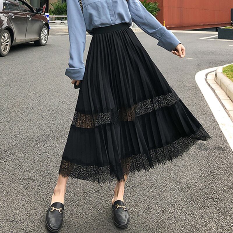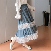 エレガントで繊細なレースをバランス良くあしらった、春にぴったりなプリーツスカートです♪