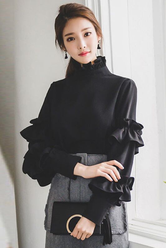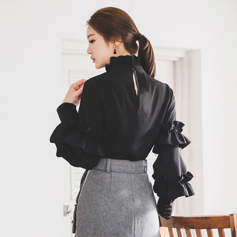 大人気のランタンスリーブのフリルがとてもガーリーなブラウスです♪