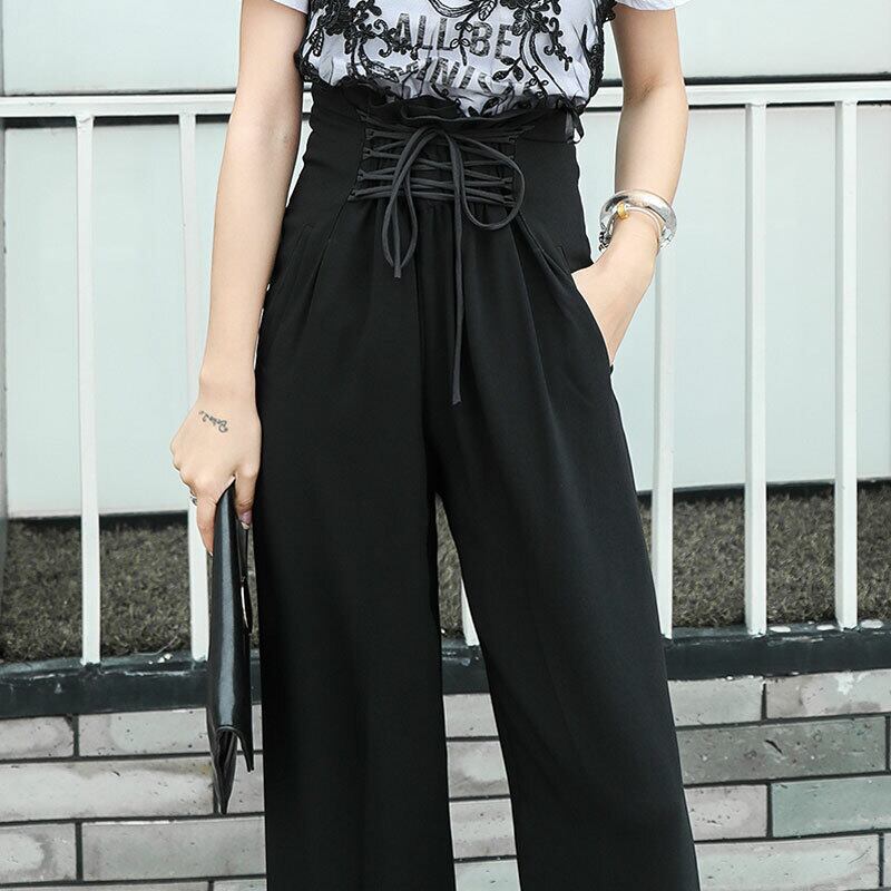 ちょっぴりセクシーな雰囲気のハイウエストフロントレースアップのワイドパンツです。
