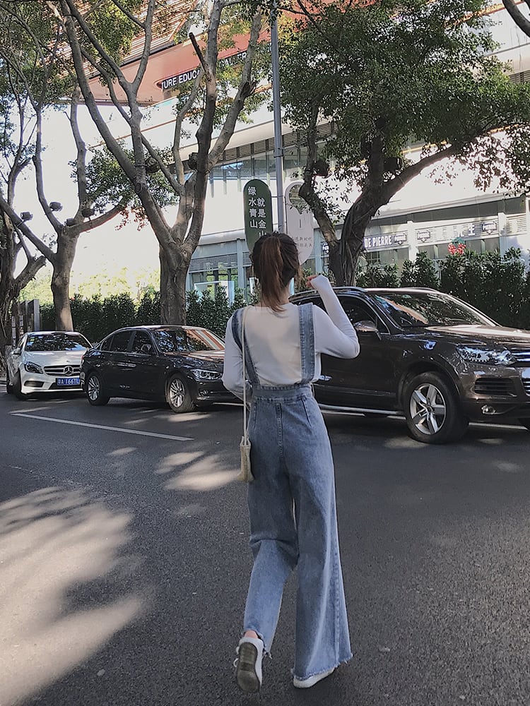 タップリのボリュームが定番デニムを一気にキュートにしてくれるサスペンダー付きワイドデニムです♪