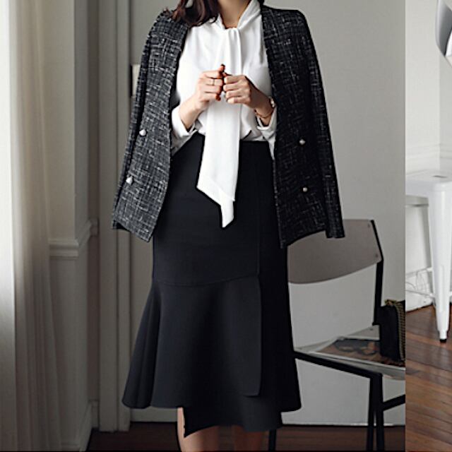 ハイウエストで脚長効果も抜群、シンプルだけど華やかなアイテムなので様々なシーンで楽しんでいただけます。