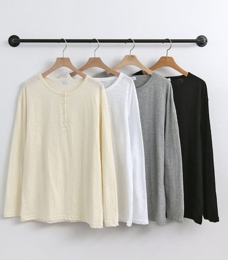 コットン素材で着心地も良い、ヘンリーネックカットソーです◎