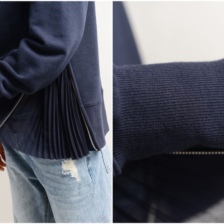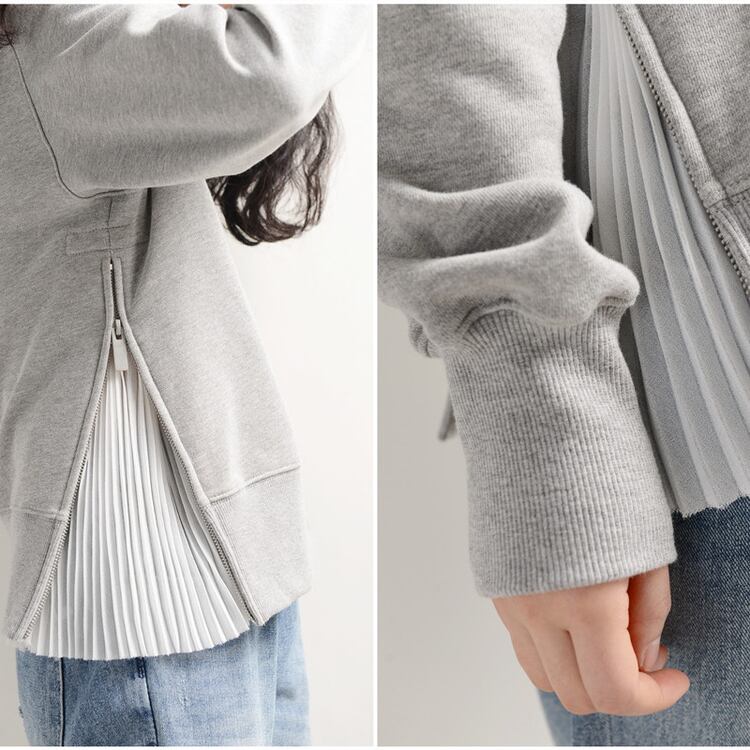 裾サイドのジッパーディテールから覗くプリーツが可愛いポイントのトップスです♪