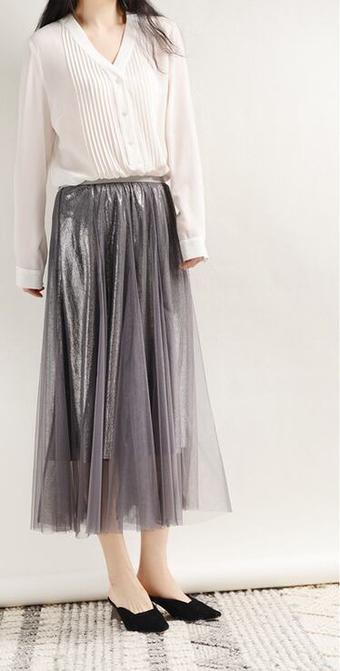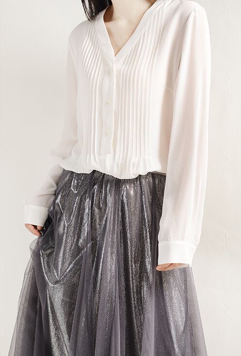 清楚で上品な雰囲気の長袖Vネックブラウスです。