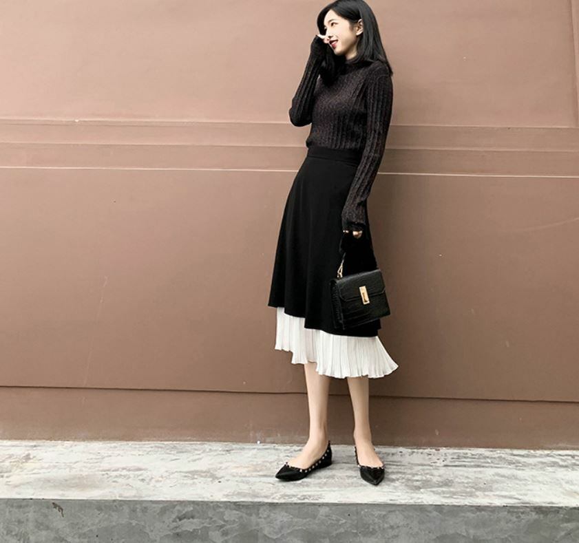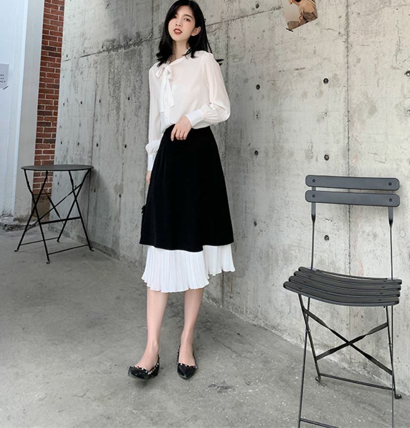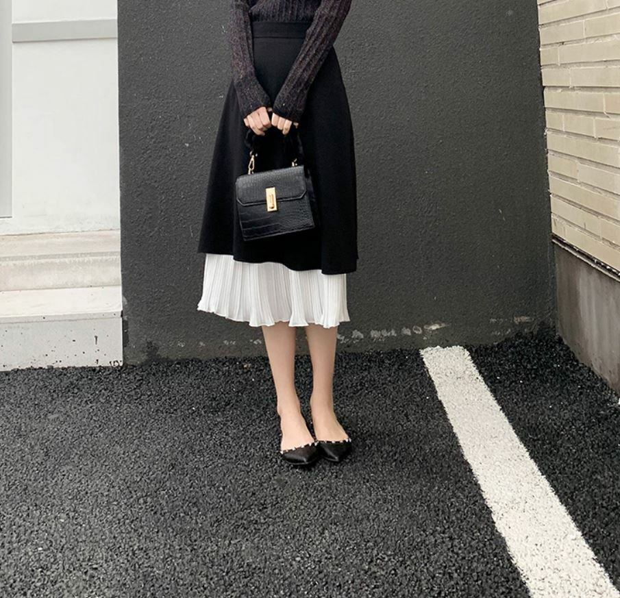 重ね着風なデザインがとってもオシャレなトレンドのモノトーンスカート☆