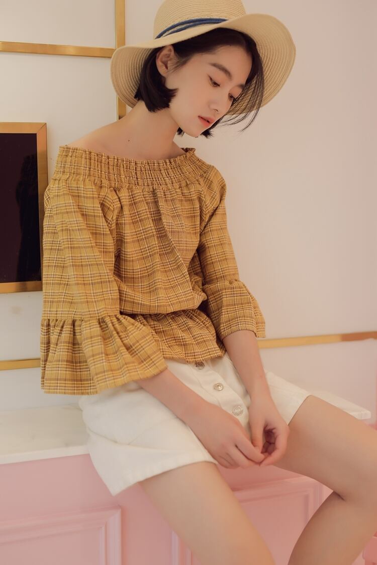 パステルカラーのチェック柄が春にピッタリなブラウス☆