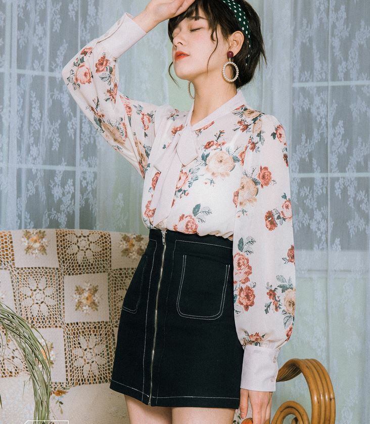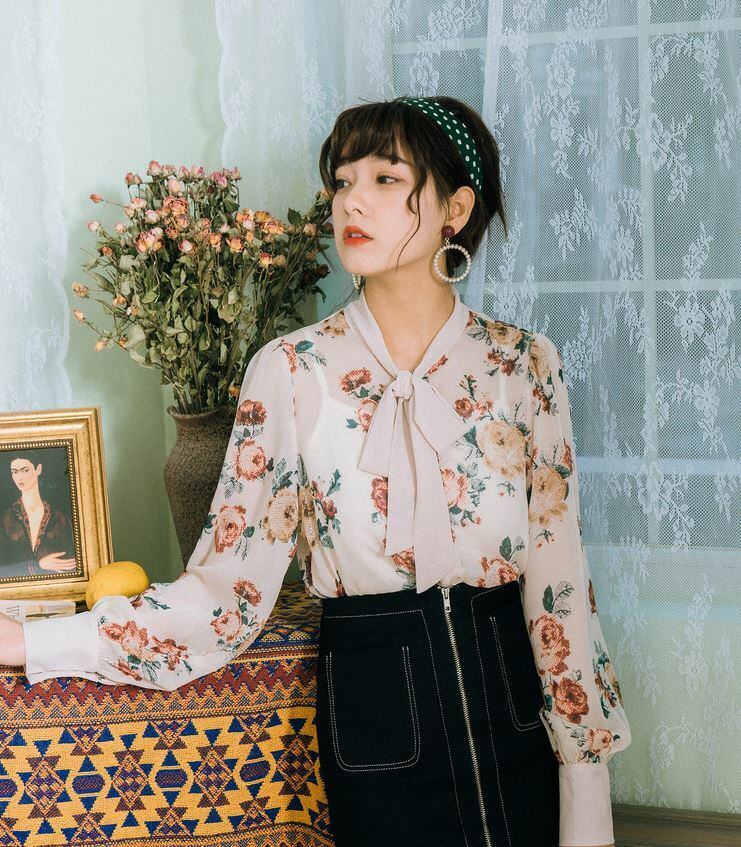 レトロなアンティーク風の花柄がガーリーなブラウス♪
