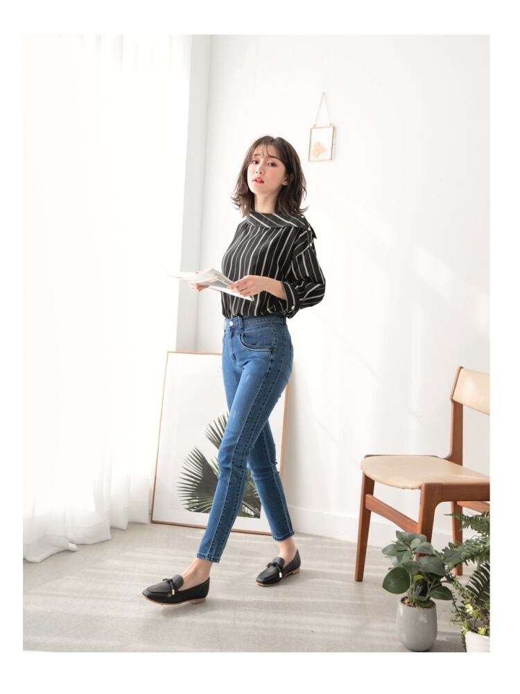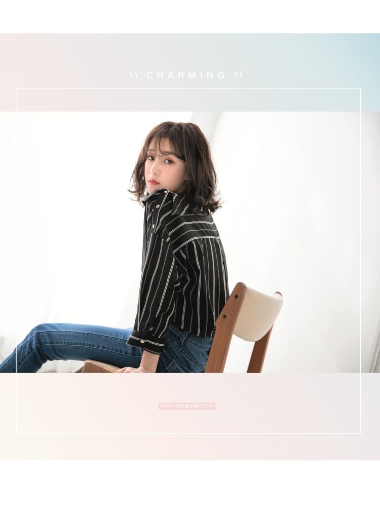 デコルテラインの開きが女性らしいオフショル風のシャツブラウスです♪