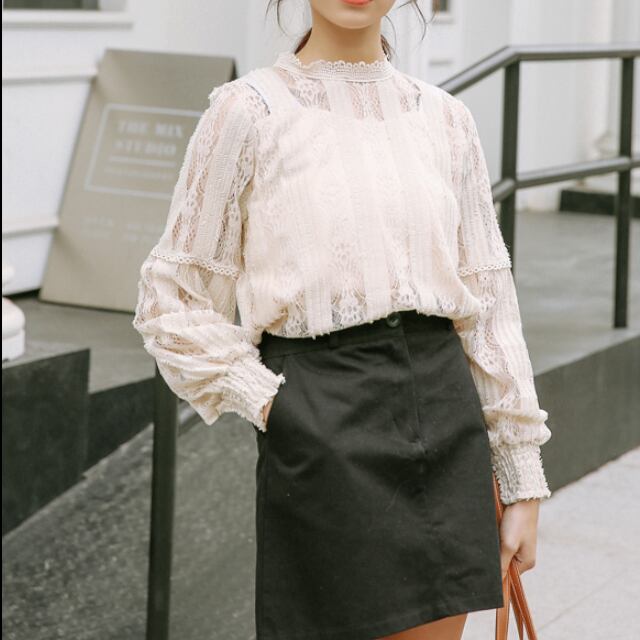 レースの繊細さが女の子らしい華奢なイメージのガーリーブラウスです。