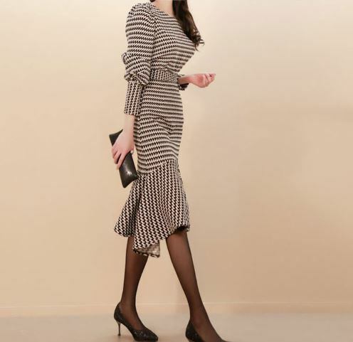 トレンド 春夏物 新作 セットアップ ツーピース 千鳥格子 ラウンドネック フィッシュテールスカート フリル タイトスカート 上品 エレガント フェミニン きれいめ パーティ 結婚式 KN-0879 | dress_sugar_moon