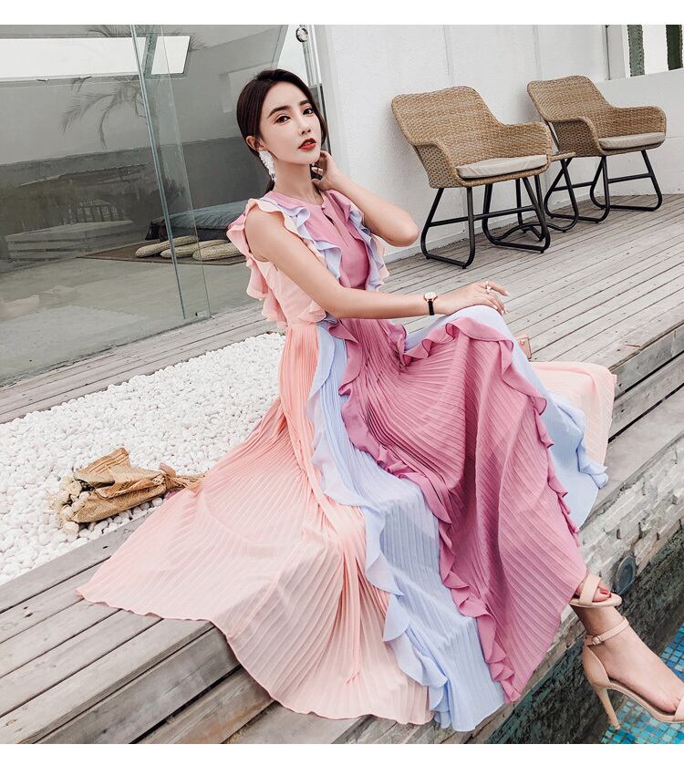 全体にプリーツとフリルがあしらわれたエレガントでゴージャスなドレスの登場です。