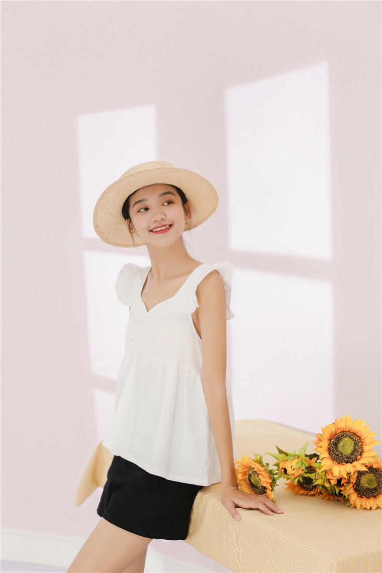 胸元の切り替え&肩のフリルがかわいい上に、綿素材で吸湿速乾性に優れるという機能面を併せ持ったアイテムです。