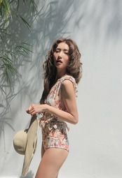 やわらかな印象の花柄がとってもフェミニンなワンピース水着です。