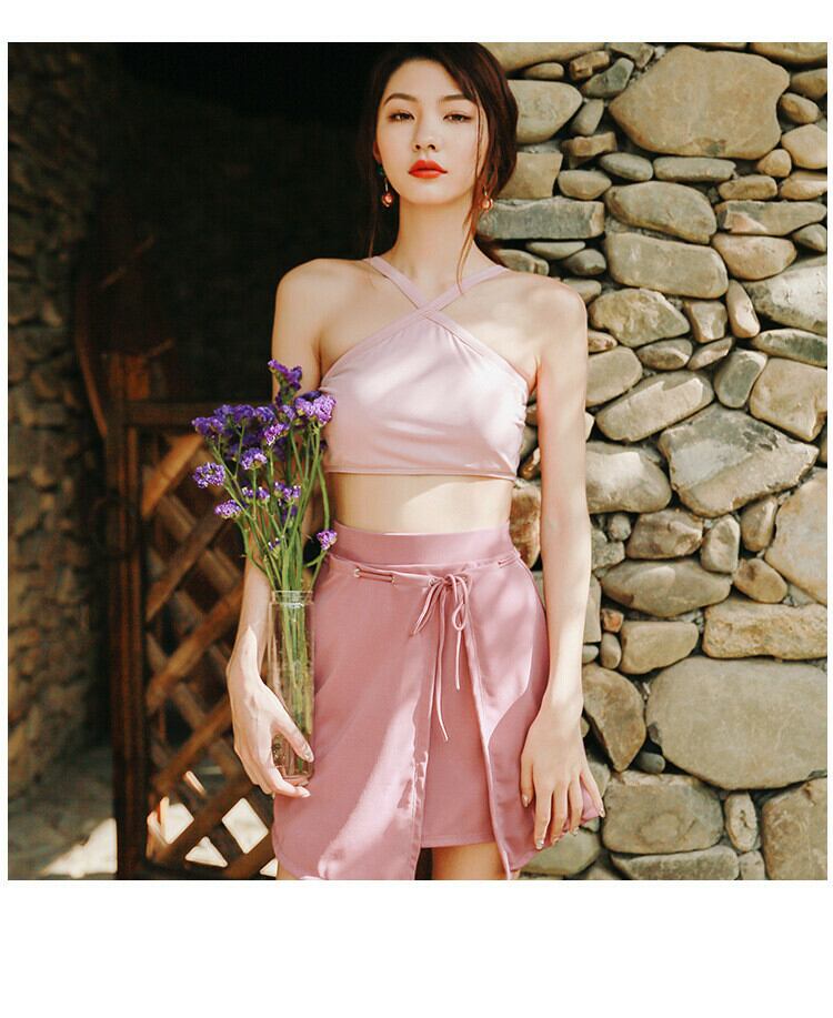 シンプルなシルエットが大人の雰囲気漂うビキニ&スカートの3点セットです。