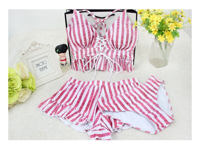 ストライプ柄が爽やかなトレンドのタンキニです。