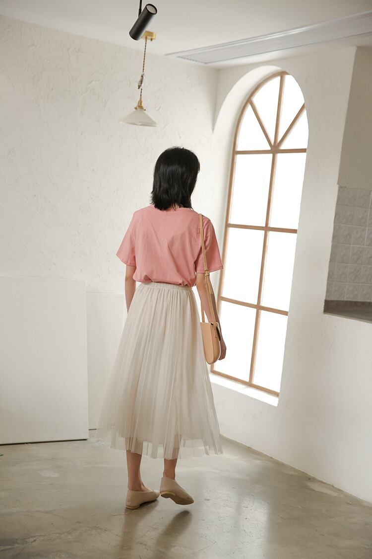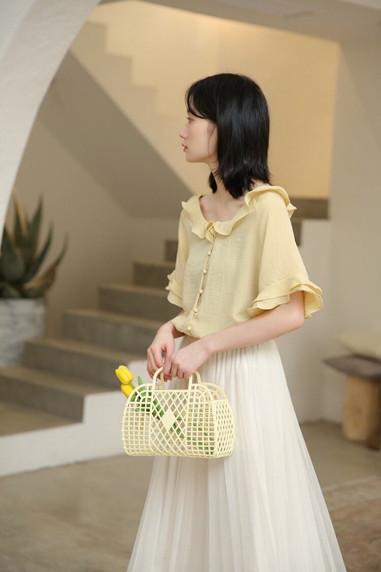 ブラウスと合わせてガーリーに、Tシャツと合わせてカジュアルにと