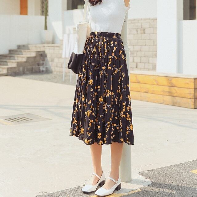 ベースの色味を抑え、花柄プリントが映えるフレアスカートです☆