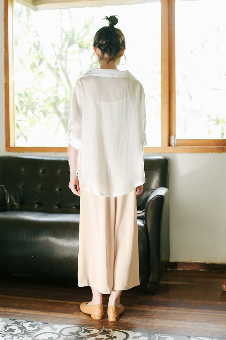 大き目カラーで顔周りをすっきりと、大人っぽく魅せるシンプルシャツです♪