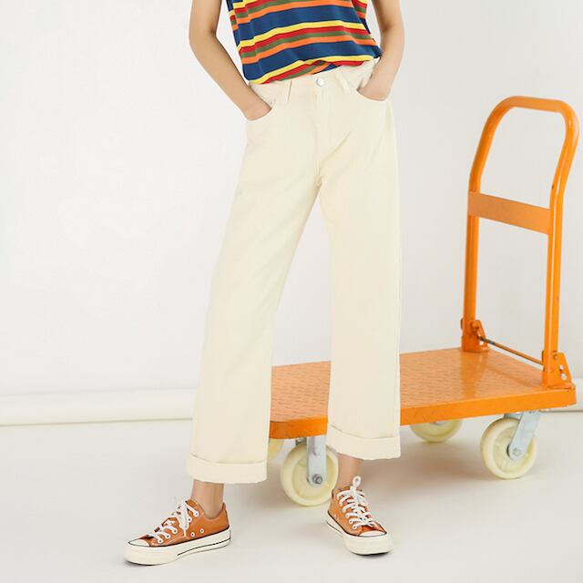 シンプルで爽やかな雰囲気のアンクル丈ストレートジーンズです。
