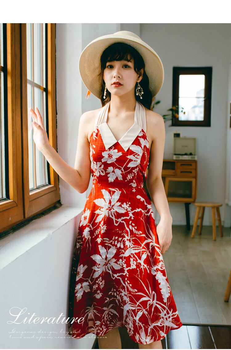 襟付きのバイカラーホルターネックが春夏にぴったりなワンピースです♪