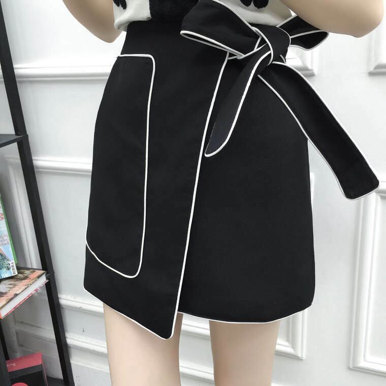 ミニスカート スカート リボン ウエストリボン ハイウエスト ラップスカート パイピングデザイン デート お出かけ 春夏 シンプル キュート カジュアル YN-4-20 | dress_sugar_moon