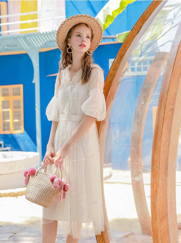 サンダルやカゴバッグと合わせて、簡単に夏のオシャレコーデが完成します。