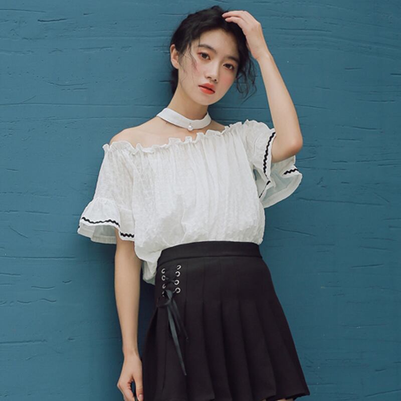 シンプルなフォルムに、全体のバランスを引き締めるチョーカーがセットになっていて素敵なポイントに☆