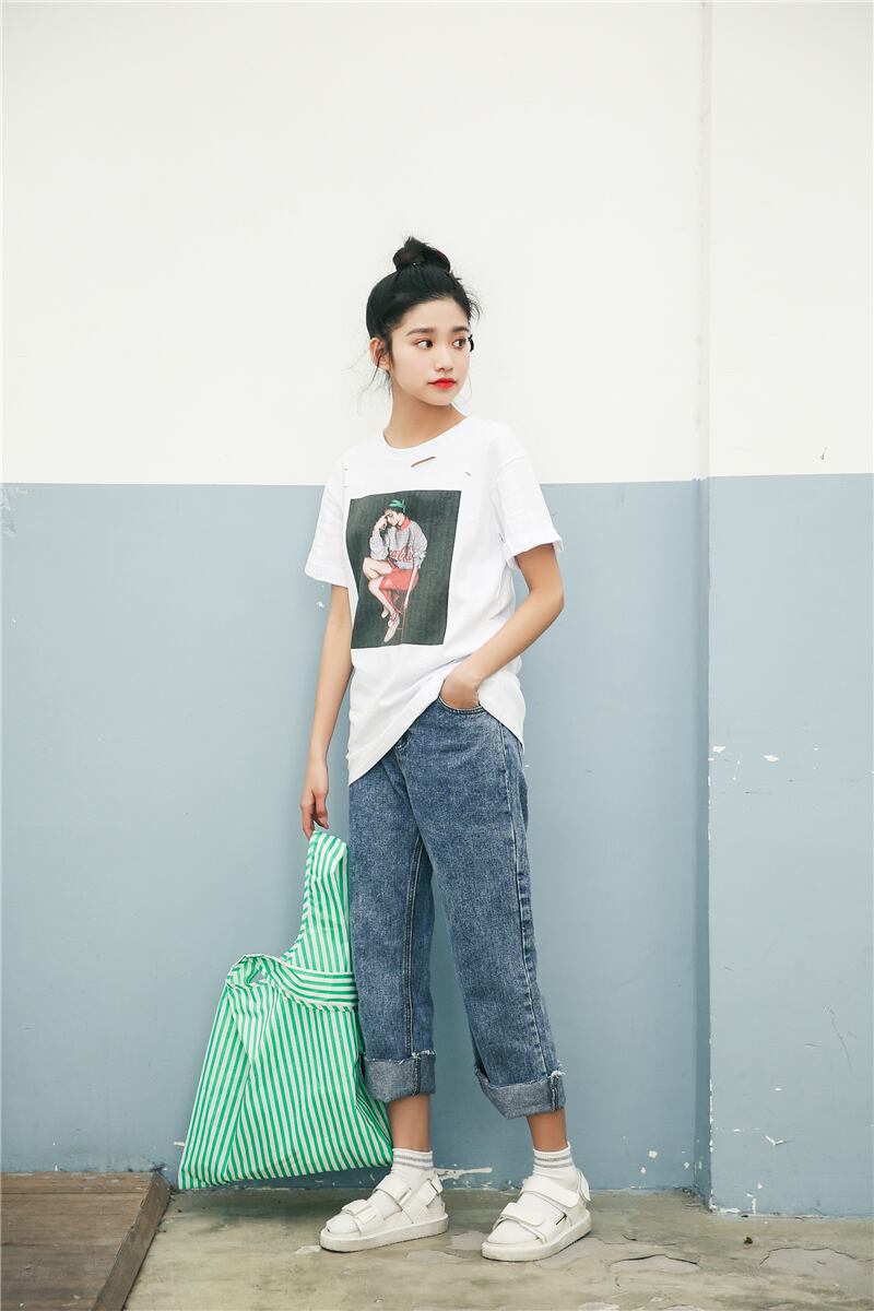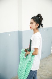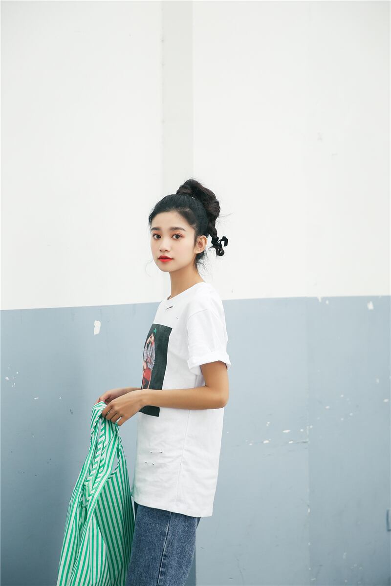 ゆったりめのカジュアルTシャツは、パンツでもスカートでもボトムスを選ばない、使い勝手の良い夏の一押しアイテムです。