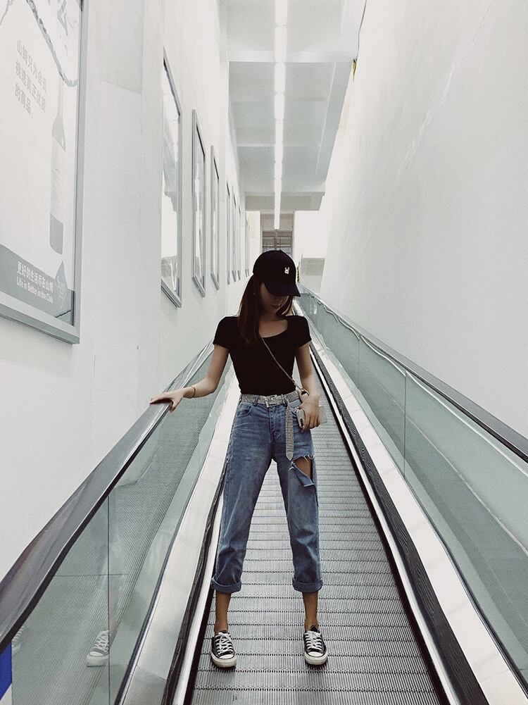 トップスをインすると、ゆるっとしたシルエットで