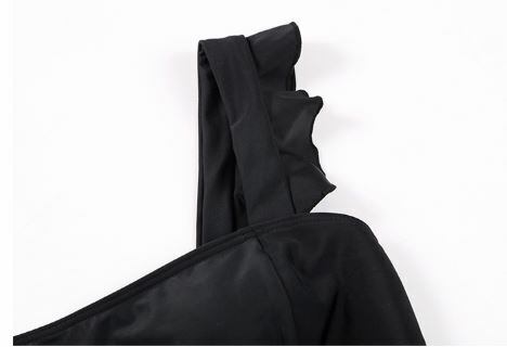 シンプルなデザインにフリルが可愛らしいアクセントとなったトレンドのタンキニです。